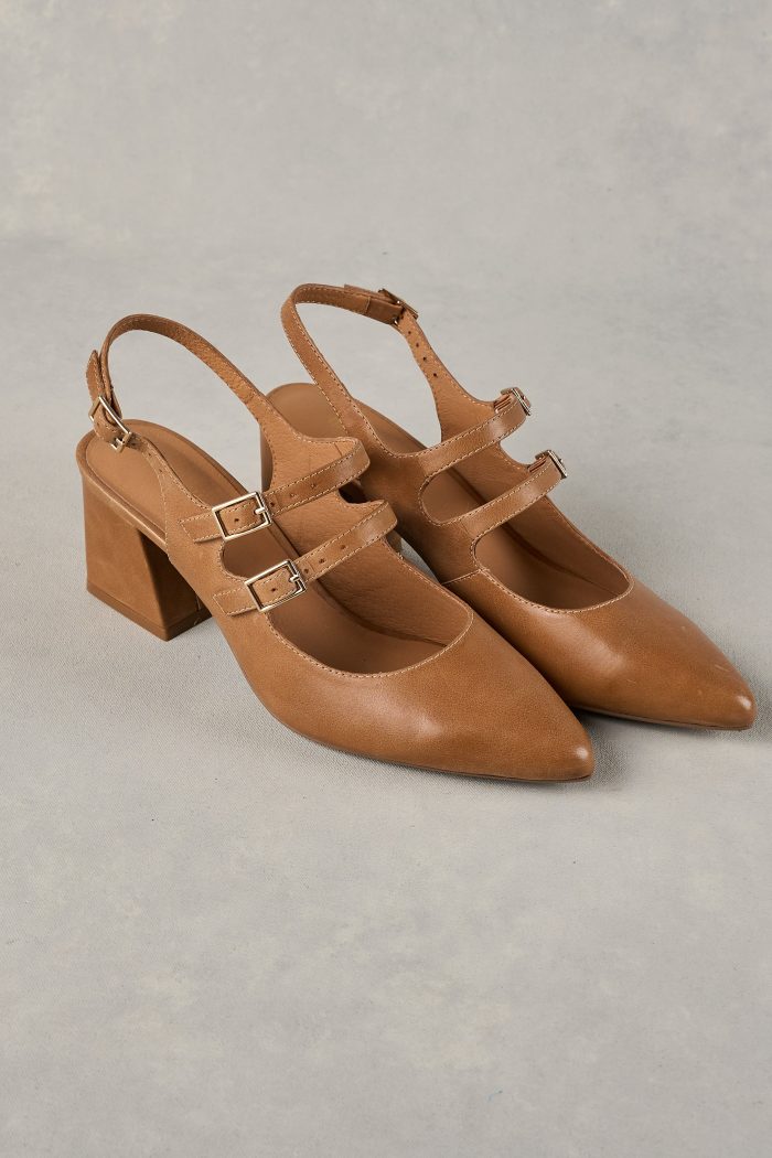 Polished yet practical, the Emily Heel is crafted in tan leather with refined double straps and a supportive block heel. Foam padding ensures all-day comfort, while its gently flexible design moves with you.