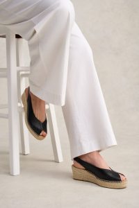 Classic and effortlessly chic, this leather espadrille features a peep toe and slingback strap for easy warm-weather wear. With a cushioned sole for comfort, it’s a go-to style for coastal strolls, market days or relaxed summer evenings.