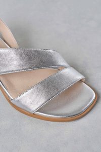Shimmering in silver, the Minnie Heel is your go-to for your special occasions. Soft leather straps and an elasticated back strap ensure comfort, while extra padding adds ease with every step. Elegant yet practical, it lifts everything from flowing skirts to tailored trousers with polished sparkle.
