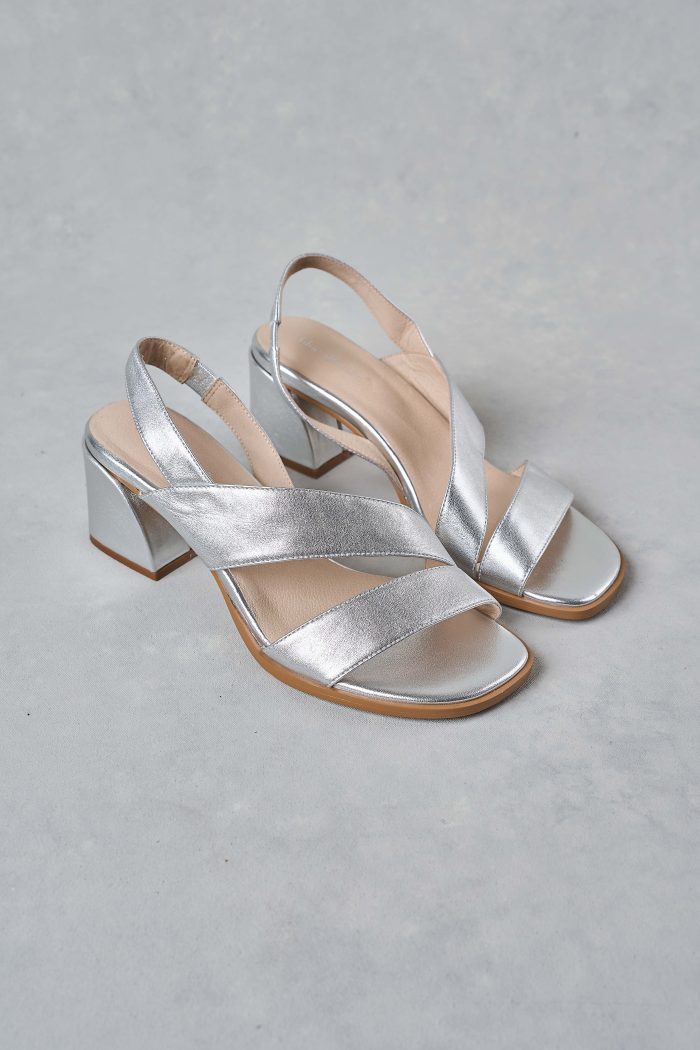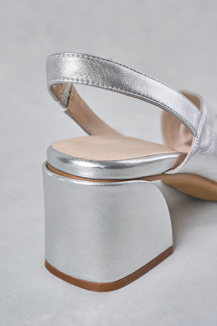 Shimmering in silver, the Minnie Heel is your go-to for your special occasions. Soft leather straps and an elasticated back strap ensure comfort, while extra padding adds ease with every step. Elegant yet practical, it lifts everything from flowing skirts to tailored trousers with polished sparkle.